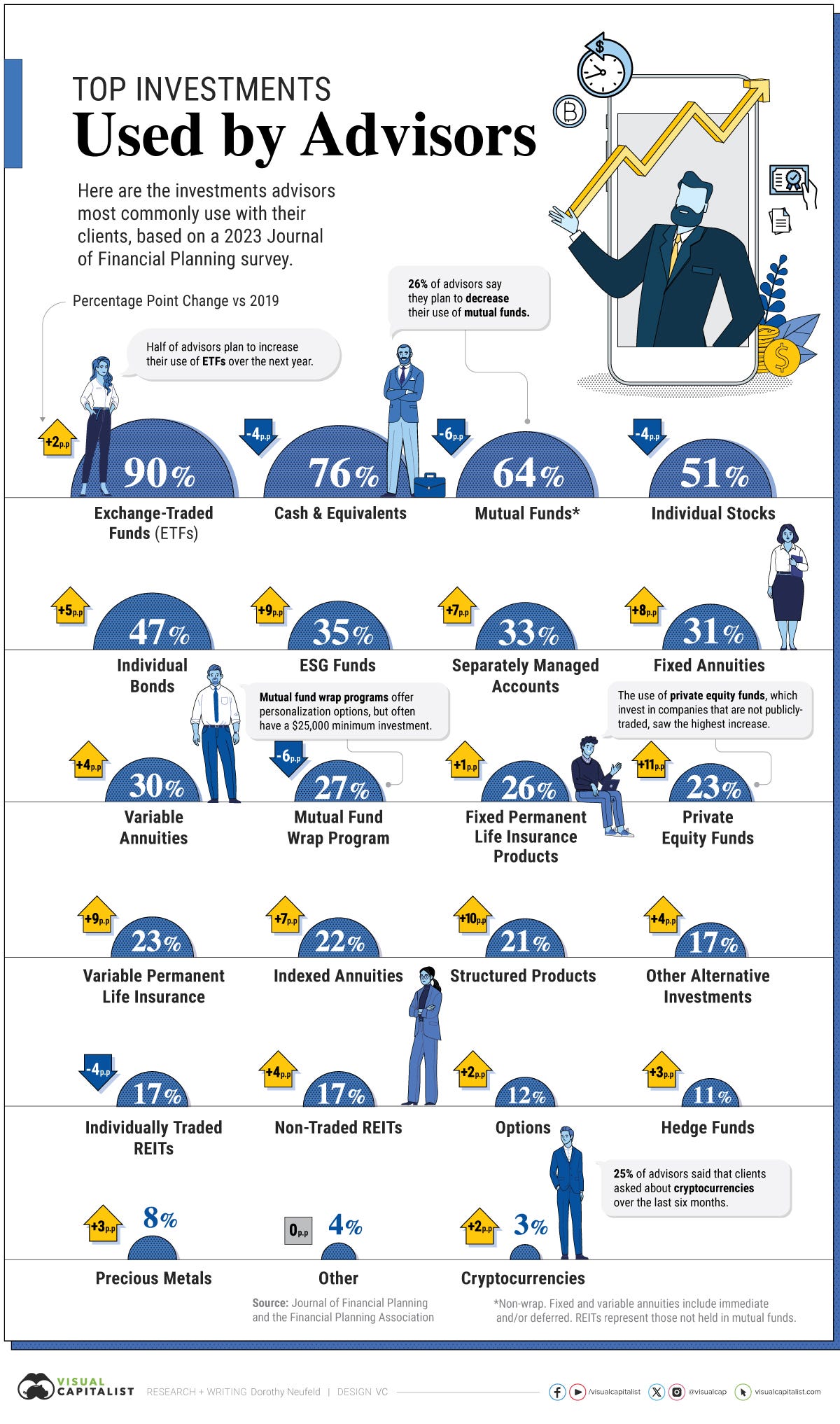 This weekās Chart shows a breakdown of various investment vehicles used by Investment Advisors and how their use has changed over the last several years. I found it pretty fascinating.