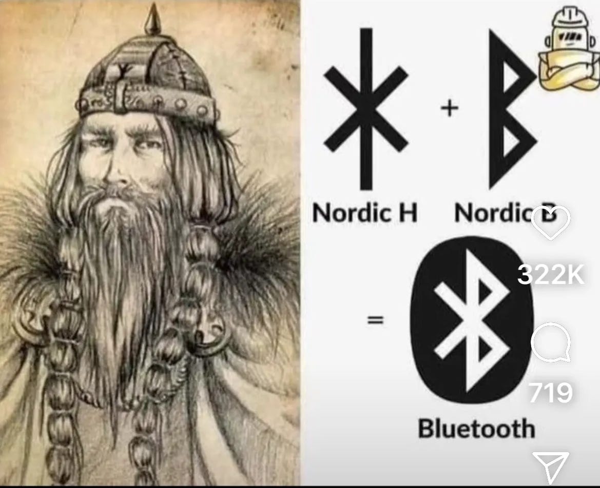 Irrelevant but interesting factoid. Turns out, Bluetooth is named after the 10th century Scandinavian king, Harald Bluetooth who peacefully united Norway and Denmark. Note the combination of the Nordic āHā and Nordic āBā.