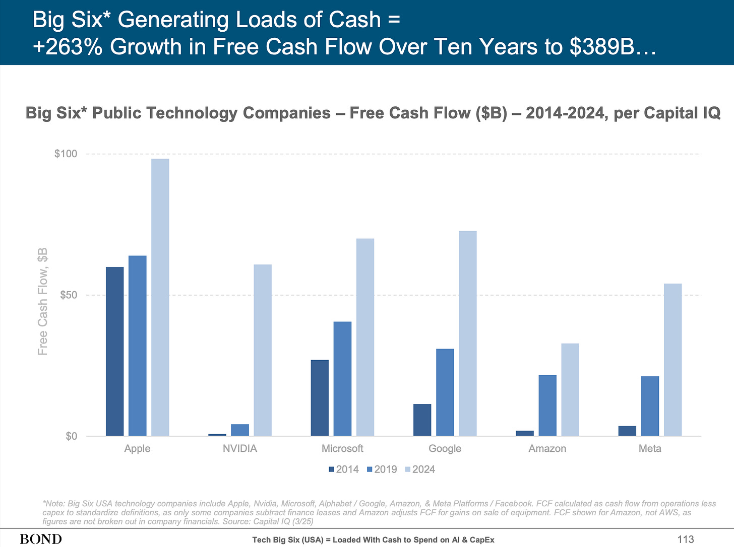 The āBig Sixā arenāt just tech giants. They could be considered sovereign financial entities with balance sheets that rival small nations. Their ability to consistently produceāand deployāfree cash flow at scale is what sets them apart.